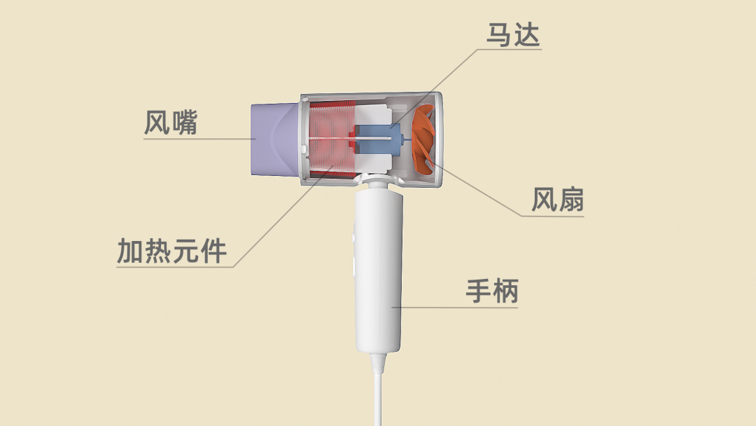 图1、传统电吹风的基础组成
